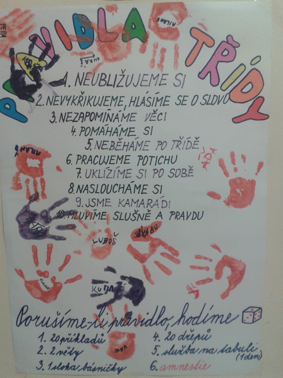 Před několika týdny jsme sepsali pravidla, která bychom měli v naší třídě dodržovat. Byla sepsána na základě nejčastějších a opakujících se prohřešků, se kterými jsme se setkávali. Pravidla by se měla dodržovat, ....a proto při porušení jakéhokoliv pravidla se háže kostkou.